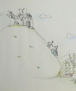 "Eines kühlen Wintermorgens, der Tau tropfte von den Zweigen der Tannen, die schon so manches Jahrhundert überdauert hatten. Hin und wieder pfiff ein Wind durch den Wald und mit großem Zögern neigten sich die grünen Giganten unter lautem Ächtzen, um der Naturgewalt platz zu machen. Inmitten diesen Kampfes der Riesen sah man ein kleines, kaum erkennbareres Licht im Wald. Es war des Königs Botschafter. Er, der schon über 7 Berge ging, durch 7 Täler, der schon 7 Meere durchschwamm und 7 Wälder. Nun ist er schon ganz nah. Er lässt seinen Blick durch das dunkle Gehölz schweifen, was nur durch das warme Licht der Laterne an Struktur gewinnt. Sein Gesicht entspannt sich.